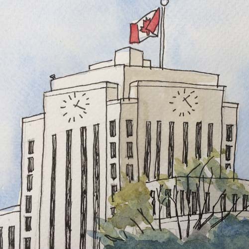 Full size TIFF file of watercolor showing Vancouver BC's city hall.